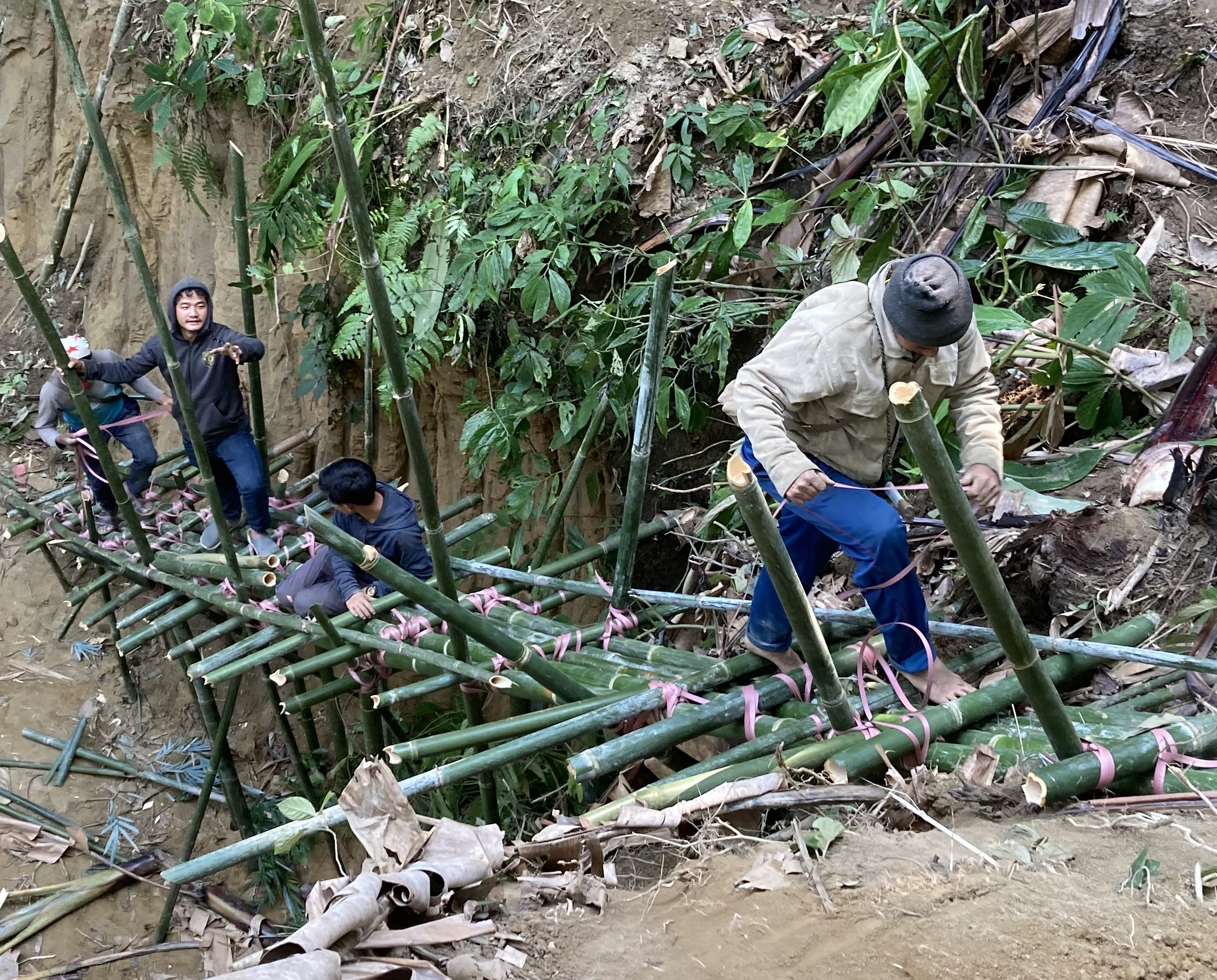 A series of cables and platforms that allow participants to slide from one platform to another while harnessed.